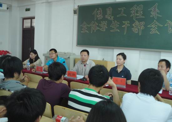 为进一步提高学生干部的素质和管理水平,6月5日中午,信息工程系在教学楼2402召开了全体学生干部大会,系党总支书记刘岩、副书记殷莺,分团委负责人彭战松,辅导员王瑶、魏增辉出席会议。