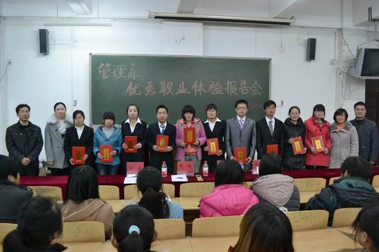 为鼓励学生积极参加职业体验,在实践中提升职业能力与就业竞争力,管理系近期组织了“优秀职业体验作品”评选活动,并于323日晚在教学楼2102室举行了活动颁奖暨优秀作品报告会。管理系副主任周爱荣、分团委书记邹新忠、工学办主任田丰出席了报告会。