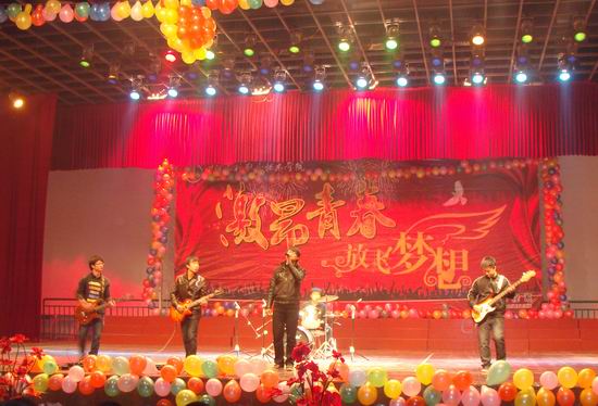 晚会在河大乐队的摇滚乐《在雨中》、《让生活继续》中拉开帷幕。随着第一个相声节目的开场,台下掌声雷动、笑声不断。舞蹈《青花瓷》以及歌曲《一个像夏天一个像秋天》更是使同学们的欢呼声一浪高过一浪。话剧《梁祝》和歌曲《nothings gonna change my love for you》使大家感受到同学们的时尚气息。而工程测量1101班女生表演的《T台秀》更是将晚会气氛推向高潮,欢呼声、掌声连绵不断。美好的时光总是过得飞快,晚会在一曲《相亲相爱》的合唱中晚会落下了帷幕。