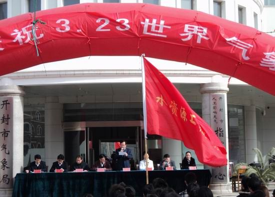 3月23日是世界气象日。为普及气象科普知识,提高环境保护意识,水资源系党总支书记朱岐武带领10级水文与水资源专业学生,参加了开封市气象局主办的“庆祝3月23日世界气象日”活动。