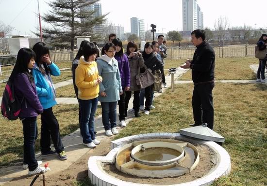 启动仪式后,在相关人员的带领下,我院学生参观了气象科普画廊。通过讲解员细致的解说,大家对一些天气现象有了进一步的了解,熟悉了有关气象条例的法律规定。随后,同学们参观了人工影响天气装备,并对部分装备的使用有了初步的认识,如液体温度表的制作原理及其读数,雨量筒的组成及其用途等。各种高科技的观测仪器让学生深刻体会到,科技的发展推动气象观测技术的革新,人类可以通过人工适当的改善天气,从而达到趋利避害的目的,为经济的发展提供良好的环境。最后,大家在气象影视制作中心观看纪录片,参观气象台、观测站。参观过程中,学生对不懂的知识进行询问,讲解员专业的解答使使同学们认识到在发展循环经济的热潮中,掌握气象规律在合理开发和利用资源过程中发挥着指导作用,意识到人与气候“和谐相生”的重要性。(撰稿:水资源系 陶攀)