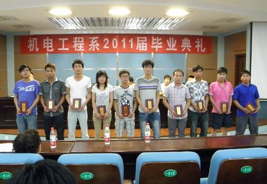 系党总支书记周建郑宣读了学院《关于对2011届优秀毕业生的表彰决定》。他希望受表彰的毕业生能够珍惜荣誉、戒骄戒躁,在新的工作岗位上创造出更大的成绩。王卫东书记和系领导为优秀毕业生代表颁发了荣誉证书,并为毕业生代表颁发了毕业证书和毕业纪念品。