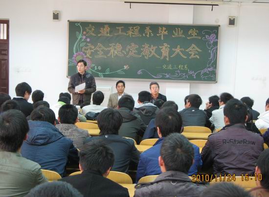 11月24日下午,交通工程系召开了毕业生安全稳定教育大会,系主任务新超、书记孙天星、副书记杜广平、教研室主任谭建领、工学办主任焦东良和毕业班全体学生参加了大会。