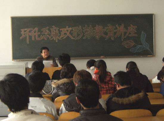 12月2日下午,环化系党总支在教学楼5203教室举行了廉政教育形势讲座,由系党总支书记陈志强主讲,环化系68名师生党员和入党积极分子接受了廉政形势教育。