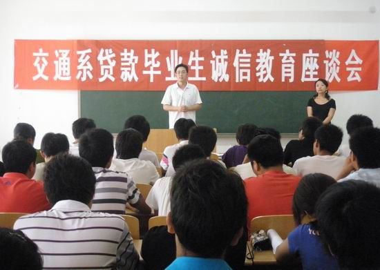 6月20日下午,交通工程系在教学楼3214教室开展了贷款毕业生诚信教育活动,该系党总支副书记杜广平、学工办主任焦东良等,以及该系贷款的全体毕业生和部分08、09级贷款学生共100余人参加了教育活动。