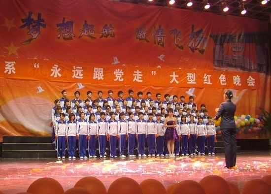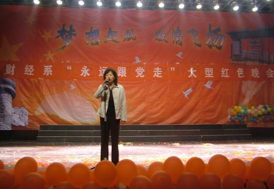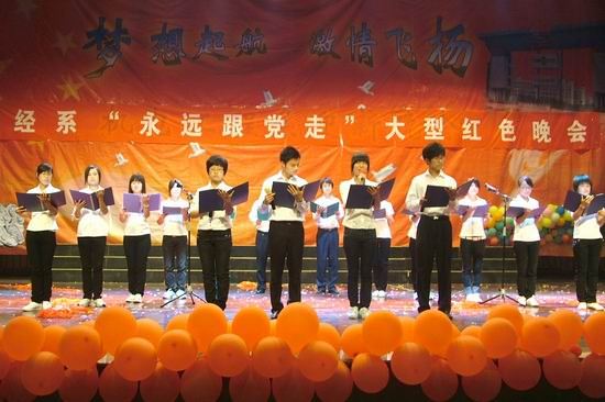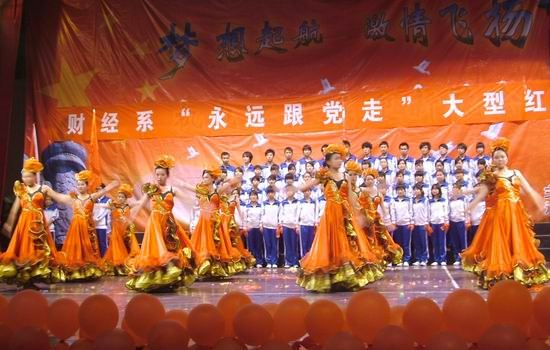 为积极响应我院党建工作的组织开展,创建特色党支部,进一步加强学生“心系党恩”红色教育,5月28日晚,财经系“永远跟党走”大型红色晚会在我院风雨球场举行。系党总支书记张玉姣、主任张辉、副主任梁建民、副书记宋建涛及各级辅导员老师观看了晚会演出。