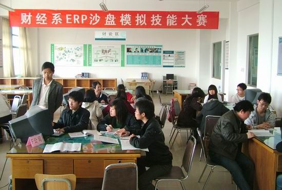 417日—418日,财经系ERP沙盘模拟技能大赛在8号实训楼8306室举行。本次大赛采用现场比赛的形式,财经系杨立功、刘振威老师担任裁判并作现场指导。