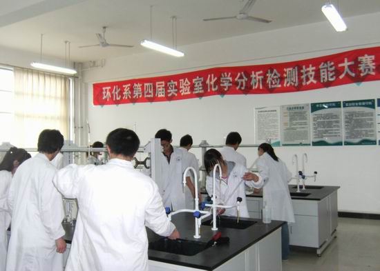5月8日上午,由环化系分团委、系实验中心举办的环化系第四届实验室化学分析检测技能大赛在该系实验中心举行。系党总支书记陈志强、系主任李党生、副主任朱惠斌、副书记楚万强出席开幕式,系实验中心魏家红等5名评委,08级、09级17个班级代表队参加开幕式。开幕式由系分团委书记王振强主持。