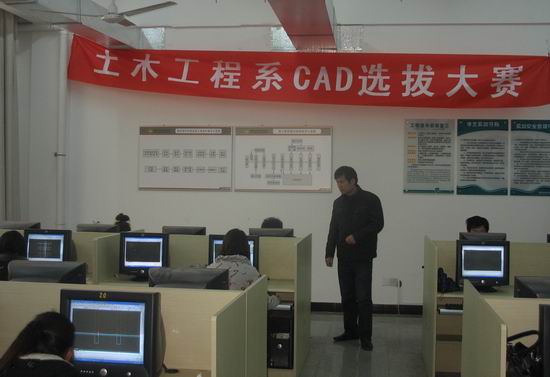 此次选拔赛共分为两个部分:手工绘图和CAD制图。手工绘图选拔赛在教学楼7212室和7210室进行,下午CAD制图比赛在土木系机房进行。紧迫的时间,紧张的气氛,比赛中同学们都积极准备,认真做题。土木系领导和部分教师莅临比赛现场,并对选手进行了现场指导。