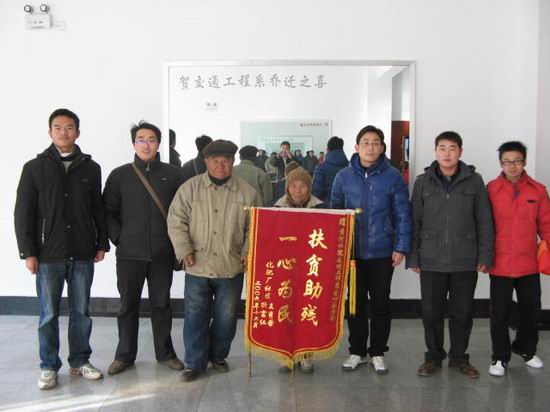 12月30日下午,一面印有“扶贫助残 一心为民”的锦旗,由开封市开化社区的二位老人代表送到了我院交通工程系,以感谢交通系爱心基金会的“走进社区奉献爱心”捐赠衣物活动。交通系党总支副书记杜广平、分团委书记焦东良,以及爱心基金会负责人庄严接受了这面充满浓浓情意的锦旗。