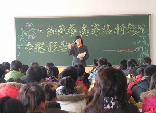 为深入落实中共中央十七届四中全会关于加强党风廉政建设精神,进一步促进廉政文化进校园活动的开展,12月3日,财经系“知荣辱、尚廉洁、树新风”专题报告会在教学楼5510室举行。系全体学生会干部及各班学生骨干参加了此次大会。