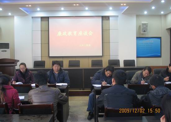 为进一步贯彻中央有关文件精神,落实学院关于加强党风廉政建设和反腐倡廉工作的指导性意见和安排,122日下午,土木工程系在2号实训楼2209会议室举行廉政教育座谈会。座谈会由系党总支书记叶建海主持,系主任王付全、副书记耿亚杰,以及部分党员教师和学生党员代表参加了会议。