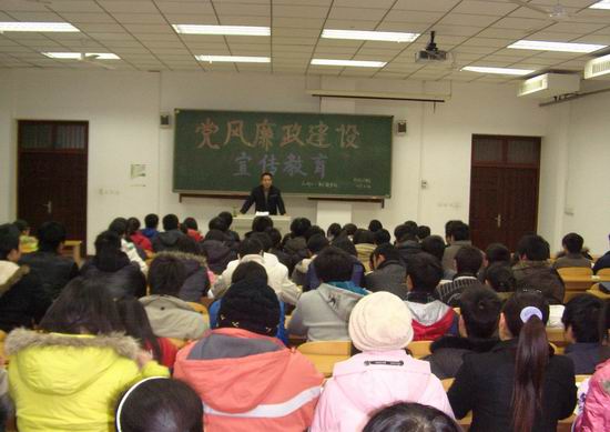 为深入落实中共中央十七届四中全会关于加强党风廉政建设精神,进一步促进廉政文化进校园活动的开展,12月3日下午,自动化工程系党风廉政建设宣传教育专题报告会在教学楼6103室举行。系全体学生党员、入党积极分子和学生骨干参加了此次大会。