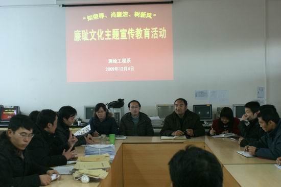 为落实学院《关于开展廉政文化主题宣传教育周活动的通知》精神,测绘工程系党总支组织开展了以“知荣辱、尚廉洁、树新风”为主题的廉政教育活动,以增强全体教职工的廉政意识。124日下午,该系组织全系教职工在8号综合实训楼8320室观看了院纪委推荐的廉政文化周宣传片《一个检察长的巧取豪夺》。