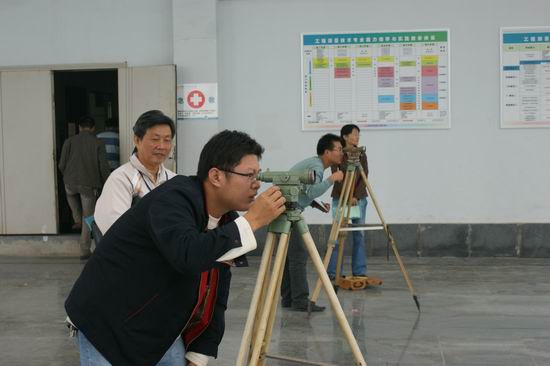 此次考核分四等水准测量(实操)、测回法(实操)和视距测量(10分钟讲课和10分钟内业计算)3项,分别对青年教师的实操能力和讲课能力进行了考核。