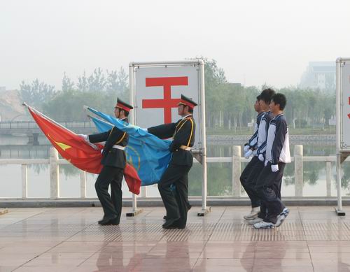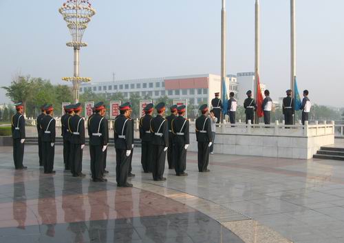 7时整,伴随着《义勇军进行曲》响亮的节奏,五星红旗冉冉升起。学生代表赵成在国旗下发言,倡议大家从身边做起,从小事做起,争创文明班级、文明宿舍、争做文明学生,使自己成为社会需要的合格人才。随后,杜书记作了讲话,他回顾了我国60年的辉煌历程和我院建校80年以来的光辉成就,鼓励同学们以学习实践科学发展观为契机,积极向上、发愤图强,努力为我院示范性建设增光添彩。全体学生在国旗下举行了庄严的宣誓仪式,决心为祖国的繁荣富强贡献自己的青春和热血。