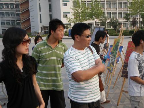 6月3日下午,社会科学部在青年大道举办了环境艺术设计专业08级学生装饰绘画及家具设计作品展。院团委书记周志琦、社科部副主任华雷、分团委书记鄢彬彬等参观了此次展出。