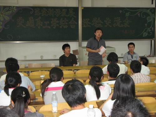 6月7日下午,交通系在教学楼6502教室召开了“工学结合 顶岗实习”经验交流会,系党总支副书记杜广平、学生工作办公室主任焦东良及该系06级、07级共220余名同学参加了交流会。