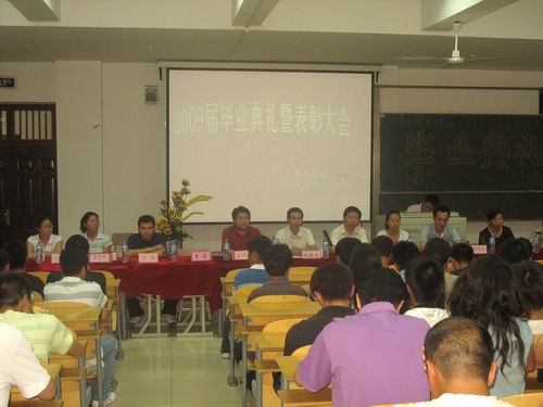 59下午,土木工程系在教学楼6202教室召开了2009届毕业生毕业典礼。学生处副处长朱焕立,土木系党总支书记叶建海、系主任王付全、副书记耿亚杰,系相关教师及2009届毕业生200余人参加了毕业典礼。