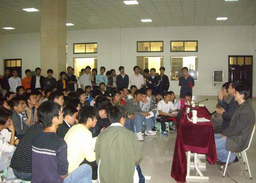 为了排解同学们对毕业生就业的疑惑,正确引导大学生就业,机电系于412日晚在四号实训楼东大厅举行了以“大学生就业和创业”为话题的师生座谈会。出席活动的有机电系党总支书记万书栋、系主任胡修池、党总支副书记庞子瑞,大会由分团委书记薛冰主持,机电系0708级学生共200余人参加了座谈活动。