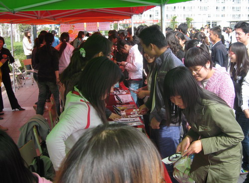 会展现场人潮涌动,参观询问的同学络绎不绝。文秘专业06级学生热心地向前来询问的学生介绍手机、MP3、数码相机等电子产品,展示出了熟练的专业技能和较高的综合素质。会展于下午3时结束。