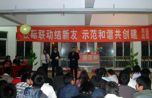 1120号,在科研外事处、团委的号召下,自动化工程系电气0701班与济源职业技术学院电气0702班在学生活动室举办了以“校际联动结新友、示范和谐共创建”为主题的班级联谊活动。参加这次活动有济源职院机电系团总支书记郑铁明、我院团委和自动系分团委的相关老师。