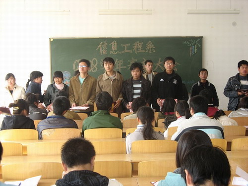 11月21日,信息工程系举行了2007-2008学年学生先进集体、先进个人表彰大会,以鼓励一学年来在学习和工作中表现优秀的先进班集体和个人。大会由负责系学工和分团委工作的张校慧老师主持,系党总支副书记殷莺老师和全体辅导员出席大会,部分获奖学生代表参加了会议。