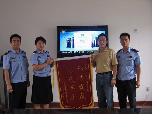 7月21日,受学院委托,交通工程系党总支副书记杜广平、分团委书记焦东良向法制教育基地—开封市金明公安分局赠送了一台47寸液晶电视和写有“警民共建,和谐发展”的锦旗,金明分局办公室主任段政、法制科科长杨爽参加了赠送仪式。