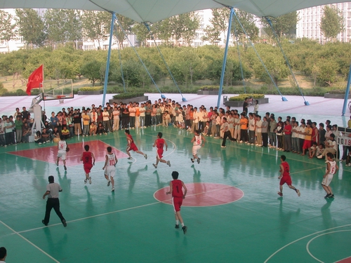 5142008年“黄河杯”篮球赛冠亚军决赛在风雨球场举行。经过近一个小时的比拼,测绘工程系代表队以52:51的比分击败交通工程系代表队获得冠军。