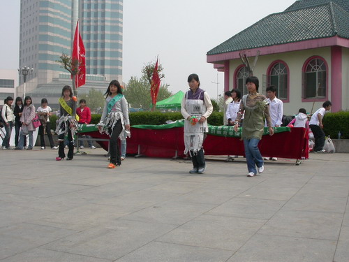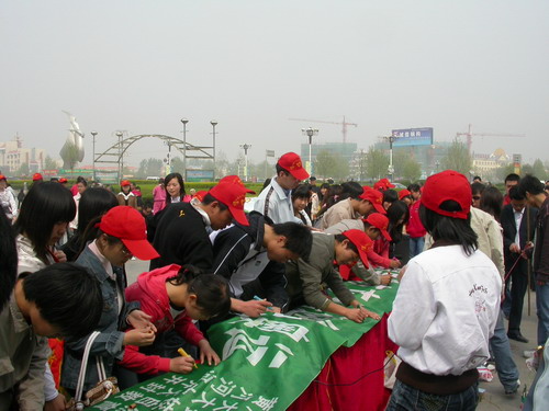 413上午10点,由我院环化系环保协会主办倡导生态文明  喜迎绿色奥运大型社会公益宣传活动在金明广场拉开帷幕。开封市环保局宣传科副科长许鹏等出席了本次活动。