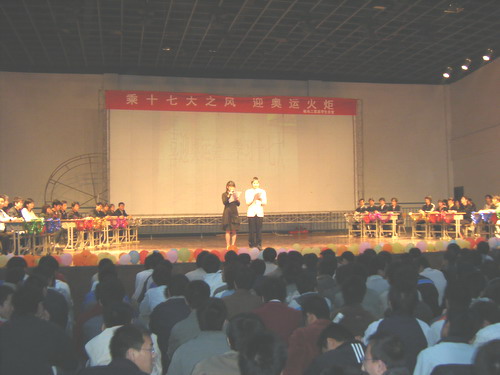 4月14日晚上由机电系主办的“喜迎奥运会,学习十七大”知识竞赛在风雨球场举行。出席此次活动的领导有学生处副处长朱焕立、团委副书记谷献晖、机电系书记万书栋以及各系分团委书记。
