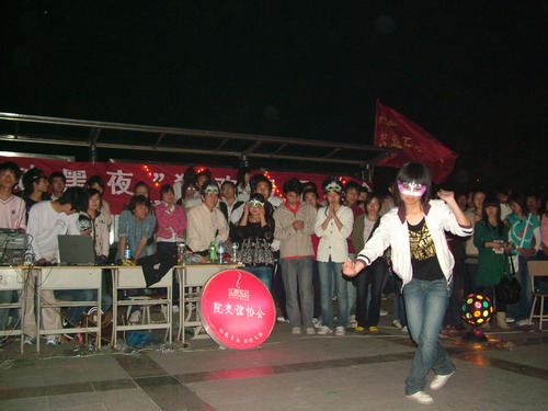 4月13日晚,交通工程系联合院交谊舞协会举办的“舞动灵魂、踏破黑夜”狂欢假面舞会在青年大道举行。