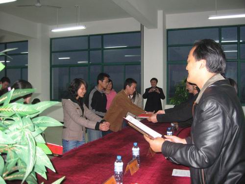 会上,彭新立书记宣读了北京福瑞堂投资有限公司第二届订单班优秀学生名单。其中,钱晶晶、卫婕、钱方同学分别获得一、二、三等奖,张春立、陈燕等七位同学获得优秀奖。