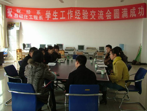 3月7日上午,自动化工程系和财经系在实验楼5610召开学生工作经验交流会,两系学工办主任、及全体辅导员参加会议。在会上,大家就学风建设、学生宿舍文化建设、贷款工作、学生奖助学金、班级管理、毕业班顶岗实习管理等方面进行了深入的交流探讨。财经系辅导员详细的介绍了宿舍文化建设、贷款管理等方面的宝贵经验,自动化系辅导员就班团组织、主题班会等方面介绍本系一些好的做法。通过交流探讨,大家一致认为通过交流有利于提高学生管理工作效率,改善工作作风,增强服务意识,推动两系的学生管理工作。