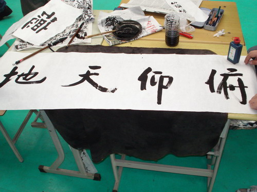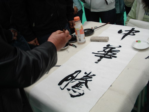 我院书法指导老师秦文志亲临现场鉴赏选手们的作品,逐一给予指导,指出选手作品中的不足。秦老师还现场创作,为选手们作示范。他说,在科技高度发达的今天,电脑可以完成很多作品创作,但是作为我们的国粹,书法有它独特的魅力,是电脑无法做到的。他鼓励大家要坚持书法练习,以书会友,培养自己的综合素质。