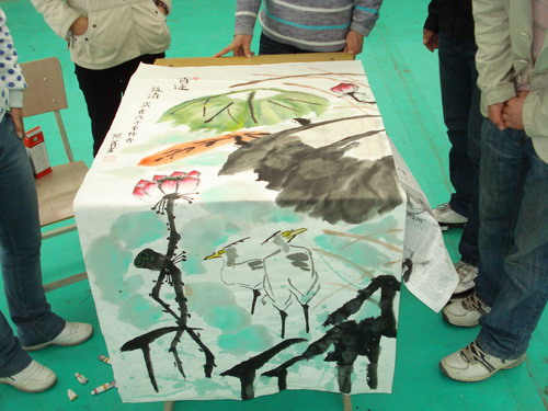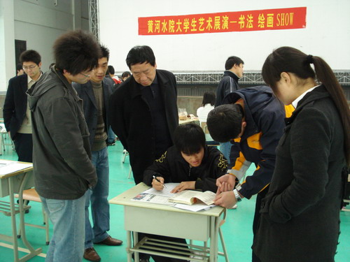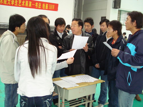 为丰富大学生的课余文化生活,院学生会于3月30日上午9点在风雨球场举办了以“建示范、迎奥运现场书法绘画秀”为主题的艺术展演活动。副院长茹正波亲临现场观看选手创作,并给同学们做了指导和点评。