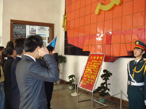 参加此次活动的有院学生会干部代表、各系学生干部代表、优秀班长以及我院国旗护卫队代表等98名同学。同学们首先向革命先烈敬献花圈,表达了对革命先烈的深切缅怀;在烈士陈列馆的党旗下,大家又重温了入党宣言,学生代表还进行了发言。