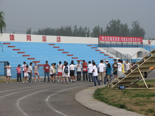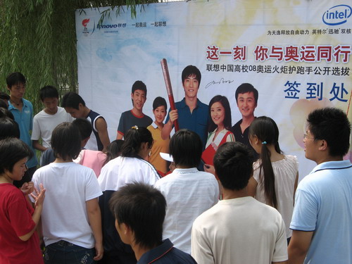 9月15日上午,联想中国08奥运火炬护跑手高校公开选拔赛开封区的比赛在我院新区足球场举行,来自河南大学、开封大学及我院的近百名大学生参加了比赛。