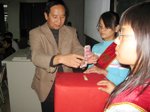 何书记就此次捐款活动的意义做出讲话,他表达了对石长飞同学深切的同情和关怀,并带领与会老师进行现场捐款。活动全场共筹得捐款1900余元。