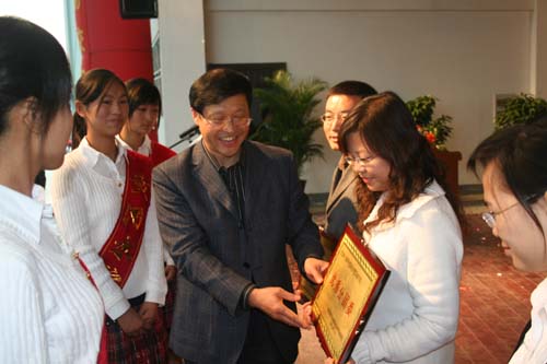王卫东书记、刘紫婷院长对我院2006-2007年度在国家、省级各类技能比赛及团内评优中获奖的单位和个人进行了表彰。王书记代表组委会对参加开幕式的领导、老师和同学们表示热烈欢迎。他说,乘着党的十七大胜利召开的春风,全院师生员工正全力以赴为做好国家示范性高等职业院校建设任务而努力,学院处处呈现出一派崭新的气象。他鼓励同学们要以饱满的热情积极投入到艺术节的各项活动中来,以更好的作品,更优异的成绩,展现大学生的风采。