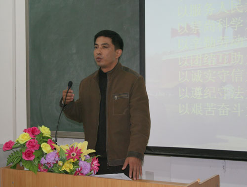 为加强我院青年学生荣辱观教育,建设和谐校园,11月15日,由院团委主办的“我身边的荣与耻”演讲比赛在新校区JX2402教室举行。经过激烈的角逐,财经系叶蕾、社科部李剑锋、环化系季德东脱颖而出荣获一等奖。