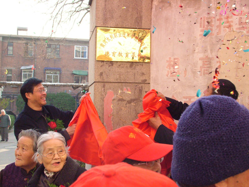 我院党委副书记王卫东和开封市老干部副局长曹乃泉共同为“德育教育基地”揭牌。