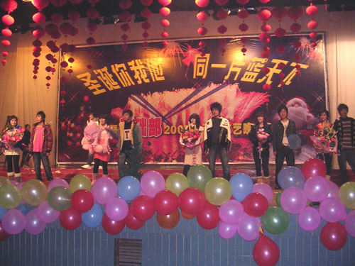晚会以“圣诞你我他,同一片蓝天下”为主题,在精彩的舞蹈《sailor》中拉开序幕,接着歌曲串烧、舞蹈、小品、古筝演奏、音乐剧、武术表演、相声、时装以及快板书让人观众赞不绝口。整台晚会和谐而热烈,让师生在喜庆的气氛中度过了一个美好的夜晚。