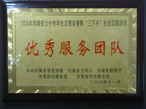 近日,中共河南省委宣传部、河南省文明办、河南省教育厅、共青团河南省委、河南省委学生联合会等部门向我院土木工程系颁发“三下乡”社会实践活动“优秀服务团队”奖牌,并给予高度评价。
