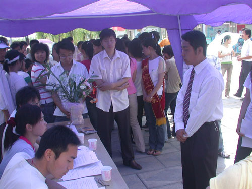 由于模拟招聘会形式新颖,组织有序,现场还吸引财经、土木等系的学生。模拟招聘会分为两个环节:一、应聘者自我介绍;二、招聘者提问。“招聘”现场,不少同学介绍自己时镇定自若,但回答提问时却略显紧张。不少同学表示,这样的模拟应聘虽然暴露了自己的不足之处,但从练兵的角度看,自己的收获还是很大的,为他们参加正式的面试打下了基础。