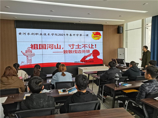 2021 年是中国共产党成立 100 周年,是“十四五”规划开局之年。为进一步乘势而上,顺势而为,做好师生思想政治工作,根据河南省委宣传部、中共河南省委高校工委、河南省教育厅《关于组织全省高校上好 2021 年春季开学思政第一课的通知》精神,在全校范围开展 2021 年春季开学思政第一课工作。在校党委的领导下,根据《黄河水利职业技术学院2021年春季开学第一课实施方案》(黄院宣〔20215 号)文件要求,我校各部门各单位,积极安排部署,精心组织实施,推动活动扎实深入开展,以课程思政为载体全力唱响爱党爱国爱人民爱社会主义的时代主旋律。(供图:各相关部门)