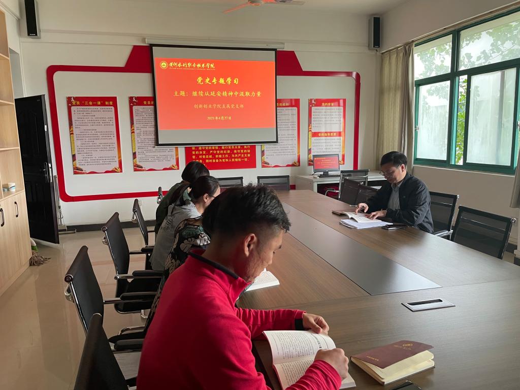 为了进一步深入贯彻落实以习近平同志为核心的党中央关于加强“四史”学习的重要讲话和有关文件精神,提高我校教师的思想政治理论素养与专业素质,427日下午,学校各部门各单位组织教职工开展党史学习教育专题会,集中学习习近平总书记《论中国共产党历史》。集中学习活动调动了全体教师参与政治理论学习的积极性,有助于使其原汁原味地领会习近平同志围绕中国共产党历史发表的一系列重要论述精神,加深了其对中国共产党为什么“能”、马克思主义为什么“行”、中国特色社会主义为什么“好”的进一步认识,坚定了“四个自信”,更加忠诚于党的教育事业,增强了全体教职工为实现中华民族伟大复兴的责任感和使命感。