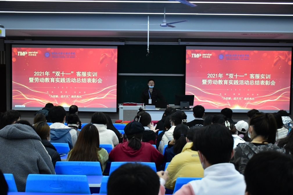 11月21日上午,2021年商务与管理学院“双十一”客服实训暨专业群劳动教育活动总结表彰大会在教学楼2102举行,标志着商管院一年一度的专业群劳动教育活动完美收官。