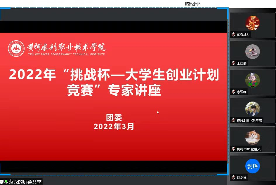 为更好的备战2022年“挑战杯—大学生创业计划竞赛”,提升参赛项目质量,3月31日,校团委组织我校开展2022年“挑战杯—大学生创业计划竞赛”专家讲座。校团委工作人员、项目团队指导教师、参赛学生等130余人参加讲座,讲座由校团委书记范龙主持。