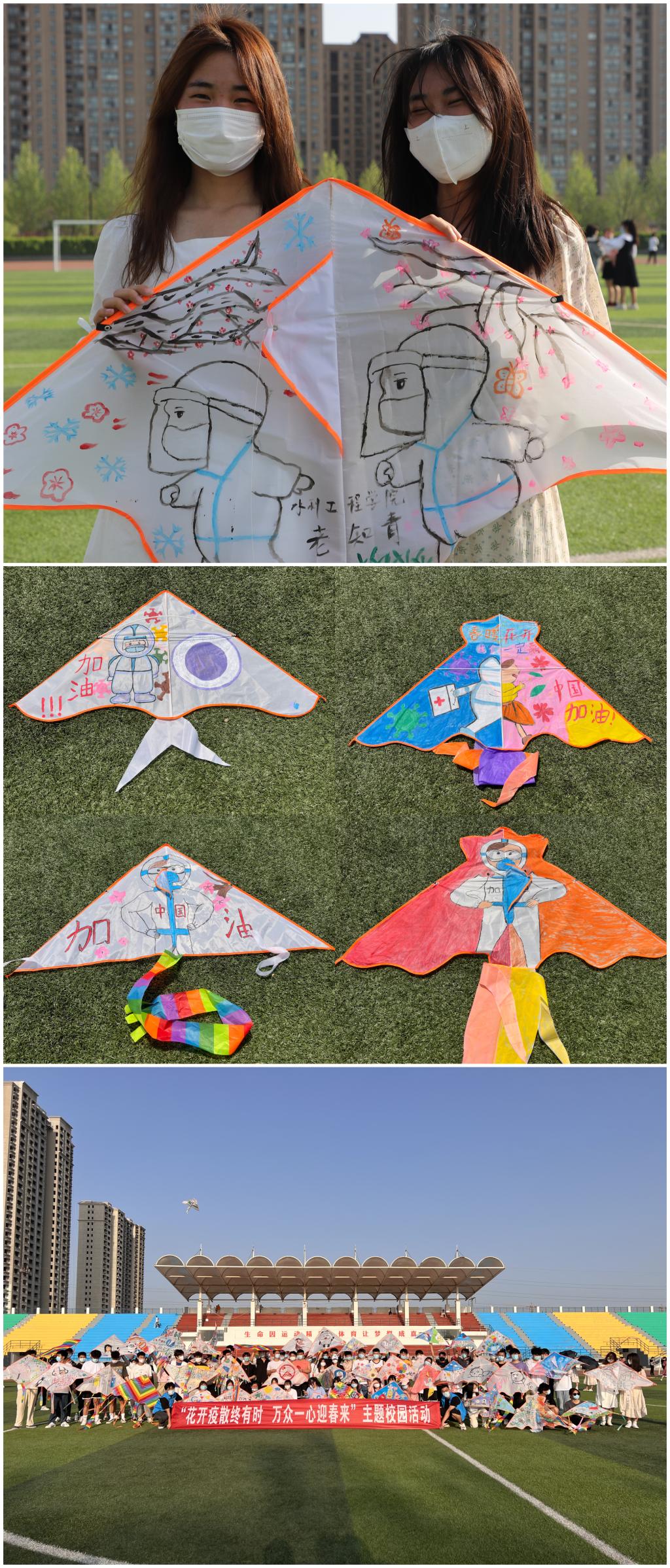 4月8日-10日,校团委在祥云体育场开展“‘疫’走春天 共待花开”DIY放飞风筝活动。在风筝设计阶段,参与同学围绕活动主题进行了DIY手绘,大家纷纷用笔墨致敬奋战在防疫一线的白衣天使、战疫英雄和志愿者,并表达万众一心,携手战胜疫情的决心。在风筝放飞阶段,同学们将绘有美好祝愿的风筝,放飞至祥云体育场上空,成为校园里面一道靓丽的风景线。同学纷纷表示:在今后的学习生活中,会努力争当疫情防控表率,做好个人防护,理性看待疫情形势,遵守校园防疫规定,为打赢疫情防控攻坚战贡献青春力量!